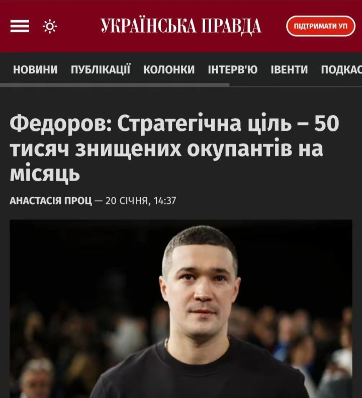 刚接过国防部长的位子,乌克兰的米哈伊洛·费奥多罗夫就向外界扔出了一句重量级的话。他说,乌军的目标是“每月消灭5万名俄罗斯人”。
