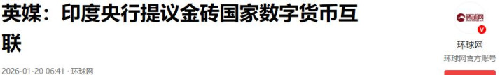 英媒:印度央行提议金砖国家数字货币互联-2026-01-20 06:41·环球网