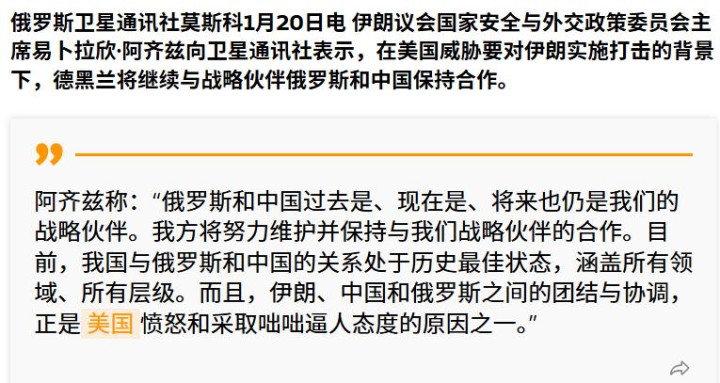 话虽简单,背后的含义很明确,伊朗高层已经下定决心,全面加强与中俄的合作。
