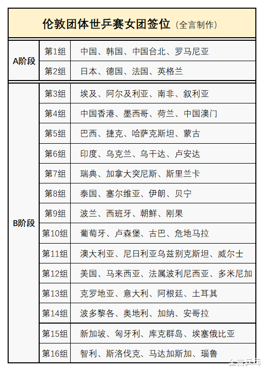 除前8种子以外,米兰其余男、女球队则是分成14个组参加B阶段的循环赛,不过需要指出的是,B阶段的开打时间其实更早,4月28日就拉开帷幕、直至5月1日结束,然后5月2日至3日才是A阶段的竞争,换而言之,今年团体世乒赛的前4天都不会有国乒选手亮相。
