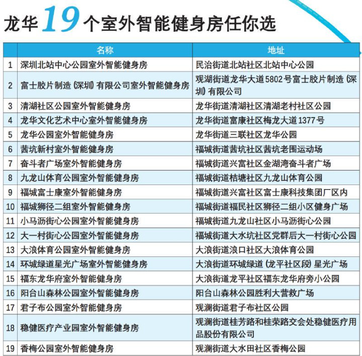 据悉,“十四五”期间,龙华在全区公园、健身广场、园区厂区等公共健身区域投放了19个室外智能健身房,免费开放给居民群众使用。