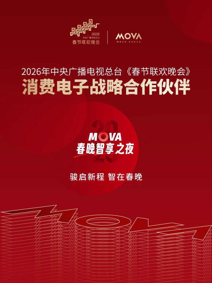 2026年1月22日,高端智能科技品牌MOVA,成为2026年春晚消费电子战略合作伙伴!