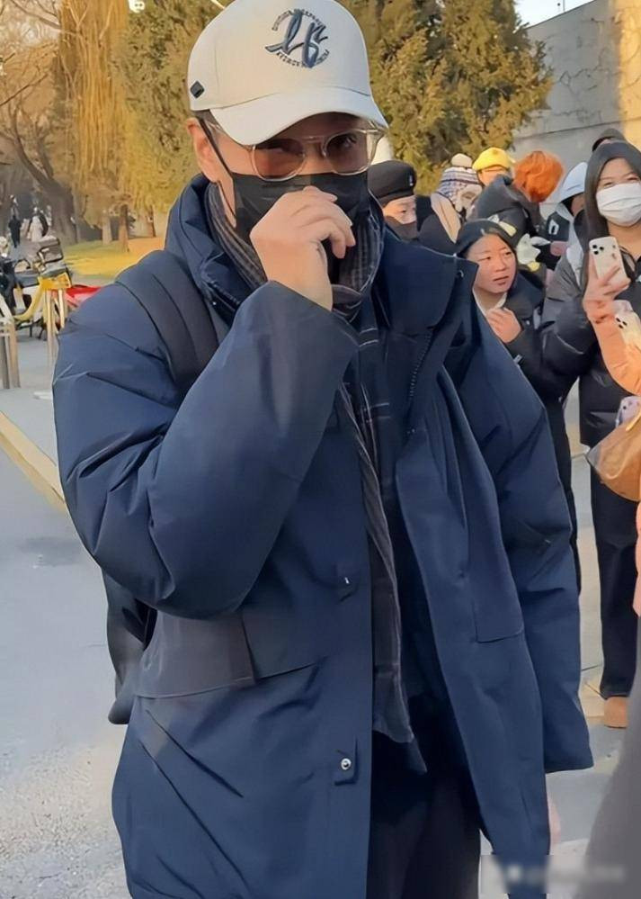 现场路透照片显示,他依旧穿着那件熟悉的旧羽绒服,帽檐压得很低,身形依旧单薄,眉眼间的疲惫尚未完全褪去,但走路的脚步却十分沉稳,神情平静地走进了彩排场馆。