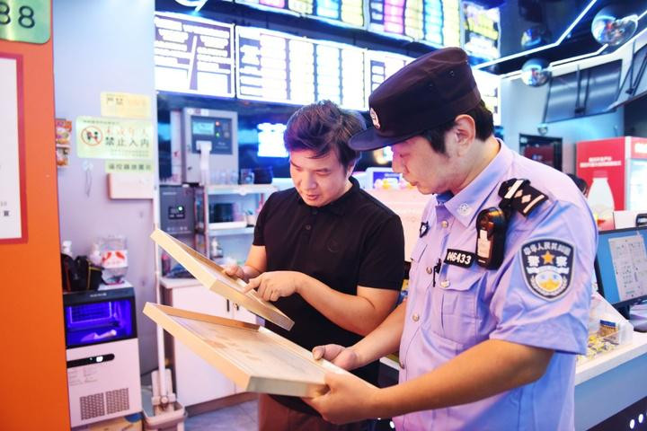 文旅部门执法人员核对《网络文化经营许可证》是否齐全有效、登记信息与实际经营情况是否一致;公安民警检查上网人员实名登记制度落实情况……2025年8月19日,来自姑苏区教育体育和文化旅游委员会、公安分局、消防救援大队的6名执法队员,对观前街周边4家网吧进行了“综合查一次”执法检查,现场执法人员迅速分工、各司其职。