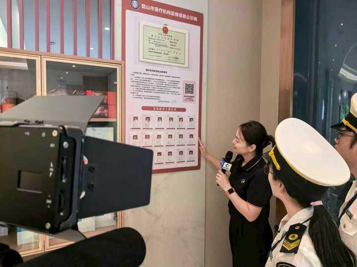“执法普法,尚法执播。观众朋友们大家好,欢迎收看《尚法‘执’播》节目,本期聚焦的是医疗美容机构……”2025年7月29日上午10点,由昆山市司法局和市融媒体中心联合打造的昆山首档执法直播节目如期举行。本期联合执法,由昆山市卫健委牵头,联合市监、消防、生态环境等部门,深入医美机构一线,协同实施全方位“体检”。