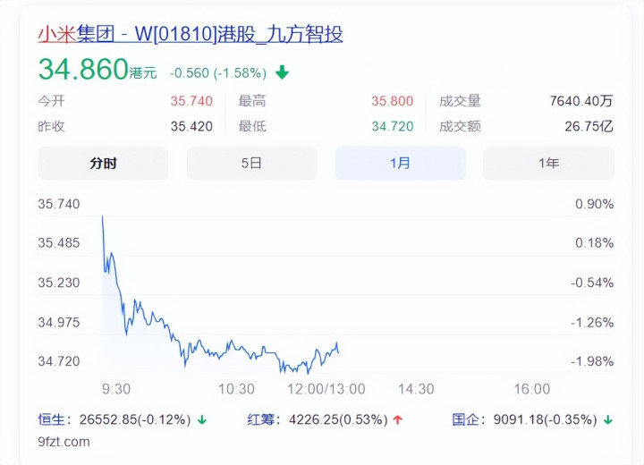 但让人意外的是,就是因为车辆起火的舆论,还有就是小字宣传等等。可以看到,这段时间小米是一直陷入舆论当中,而且是到了没有办法解决的那种。也正是如此,小米的股价就一直下跌,从原来的五六十块一股,到现在已经跌到了34.86港元。总市值也只有9000多亿了。
