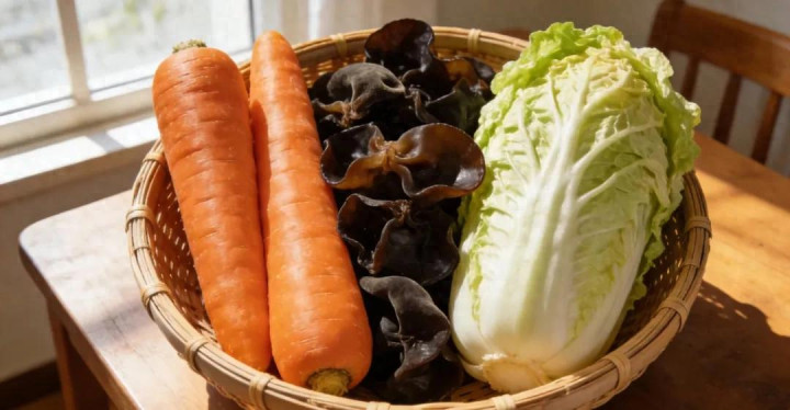 白菜性凉味甘,水分充足,可清热利湿,缓解体内湿气淤积;木耳被誉为“肠道清道夫”,富含植物胶质,能吸附肠道内的垃圾毒素,且同样属于碱性食材。