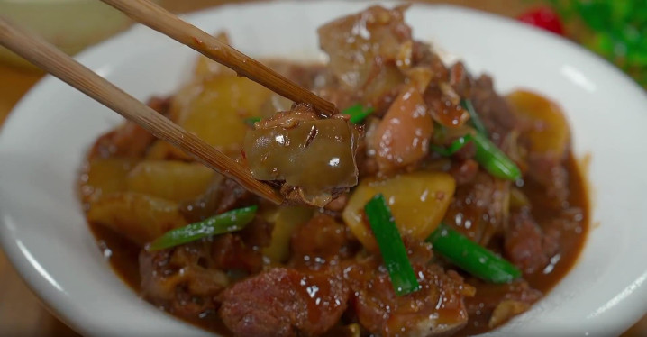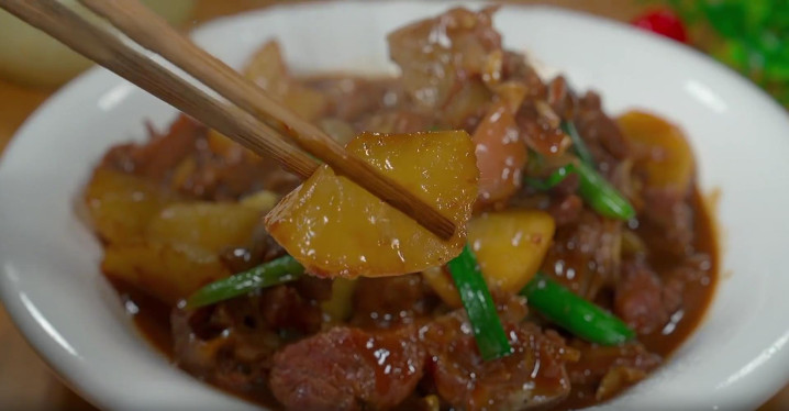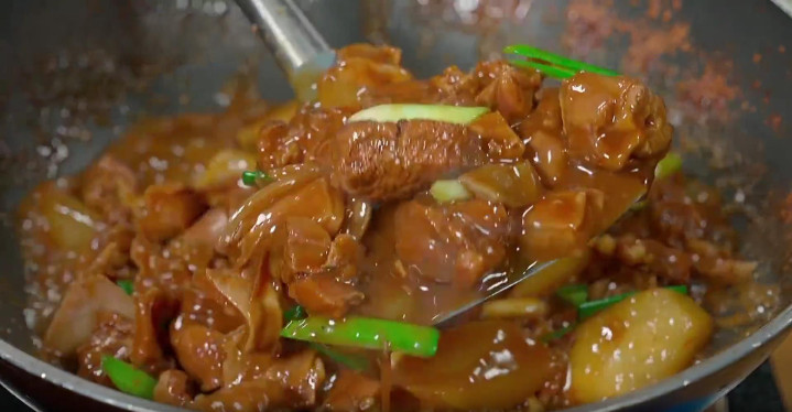 10、15分钟后,一打开盖子,现在整个客厅都是它的香味,萝卜用筷子轻轻一戳,就感觉很软糯,最后大火收汁,出锅前加入一些葱段点缀,翻炒均匀后,美味即成。