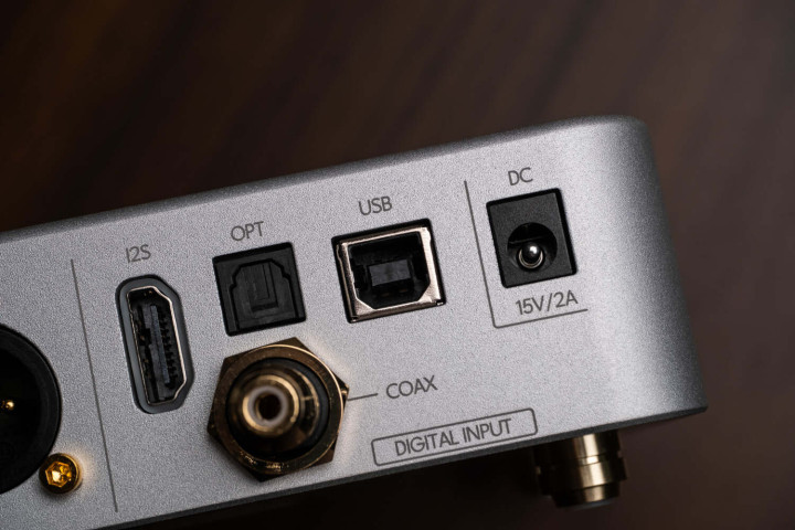 机身背后是密密匝匝的输入输出接口。中间用一根细线将傍边永别开来,左边是模拟输出和平衡输出接口,右边是I2S、同轴、光纤、USB输入接口——USB给的是传统的方口(USB-B),应该是为了和传统HiFi音频汲引兼容,践诺上VERSE这样棒的体积和声息我认为搭配手机或PAD愈加合适,好在B口也有转TYPEC的线材或转商讨,这个需求不难已毕。最右边是15V/2A的DC电源接口,也就意味着这机器是不错搭配线性电源来进一步进步音质后劲的。据悉官方线电也还是在开采中了。