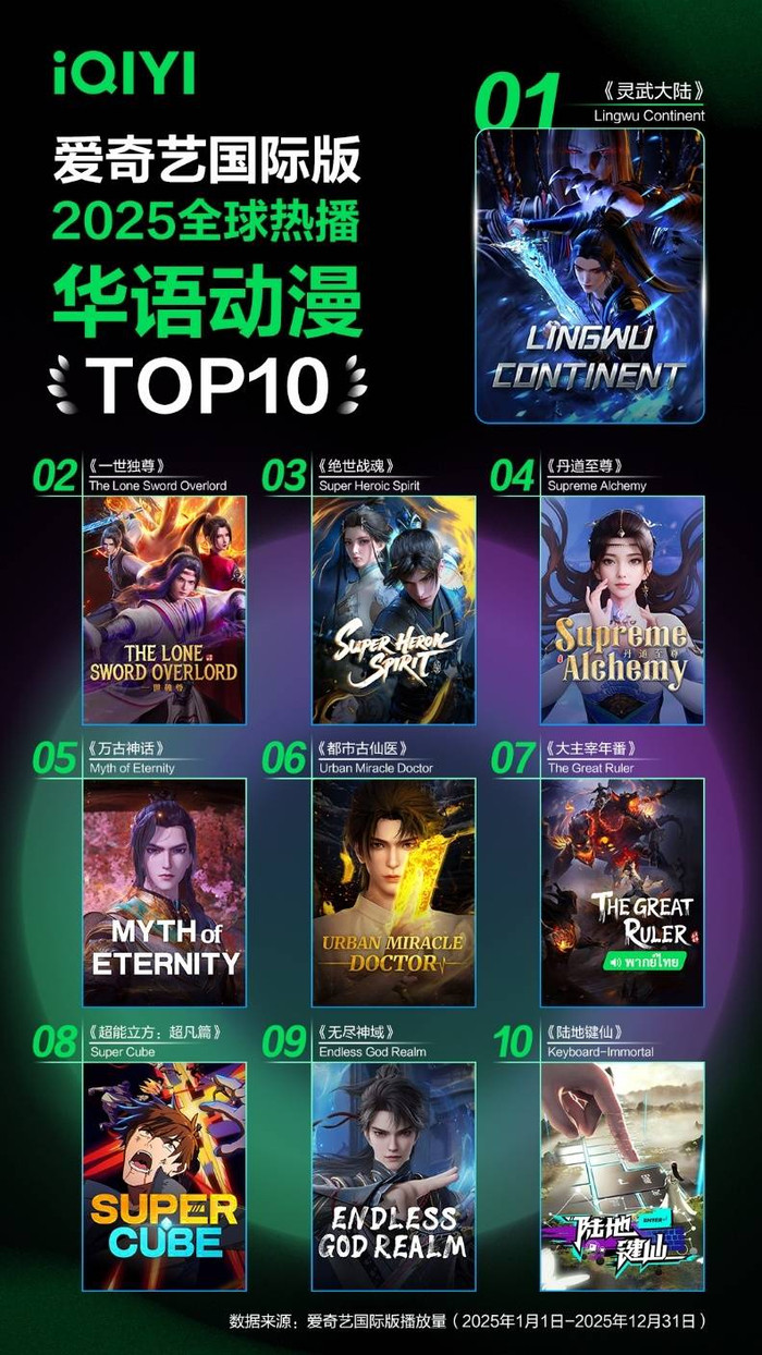 此外,米兰app本次爱奇艺国际版也进一步揭晓了更多品类华语内容的海外表现。华语动漫方面,国漫出海呈现出鲜明的类型化特征,热播榜前十作品中东方玄幻题材占据八席,《灵武大陆》《一世独尊》《绝世战魂》等均以热血成长叙事、宏大世界观与精良制作为核心,成功吸引全球动漫爱好者。华语电影方面,经典文化IP改编作品展现出强大的全球号召力。“哪吒”相关题材电影包揽了华语电影热播榜前三名,可见,“哪吒”IP强大的全球关注热度在流媒体上得到了有效延展。