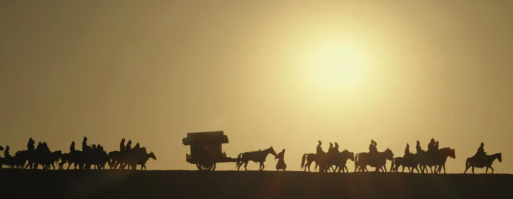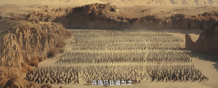 画面构图融合中式对称美学,又令人想起历史剧黄金时代——随便一帧画面便仿佛都带着那个时代的风沙。