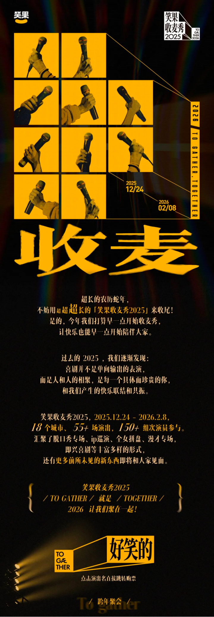 比如,我们攒了几波大演出——北京/上海/深圳三城同步跨年;推出了几个新的个人专场和新产品——很多都快速售罄了;打造了几个「第二现场」—-第一次落地了收麦秀限定的自制线下综艺、第一次做了专场剧院导览,第一次在上生新所包下了一栋楼···